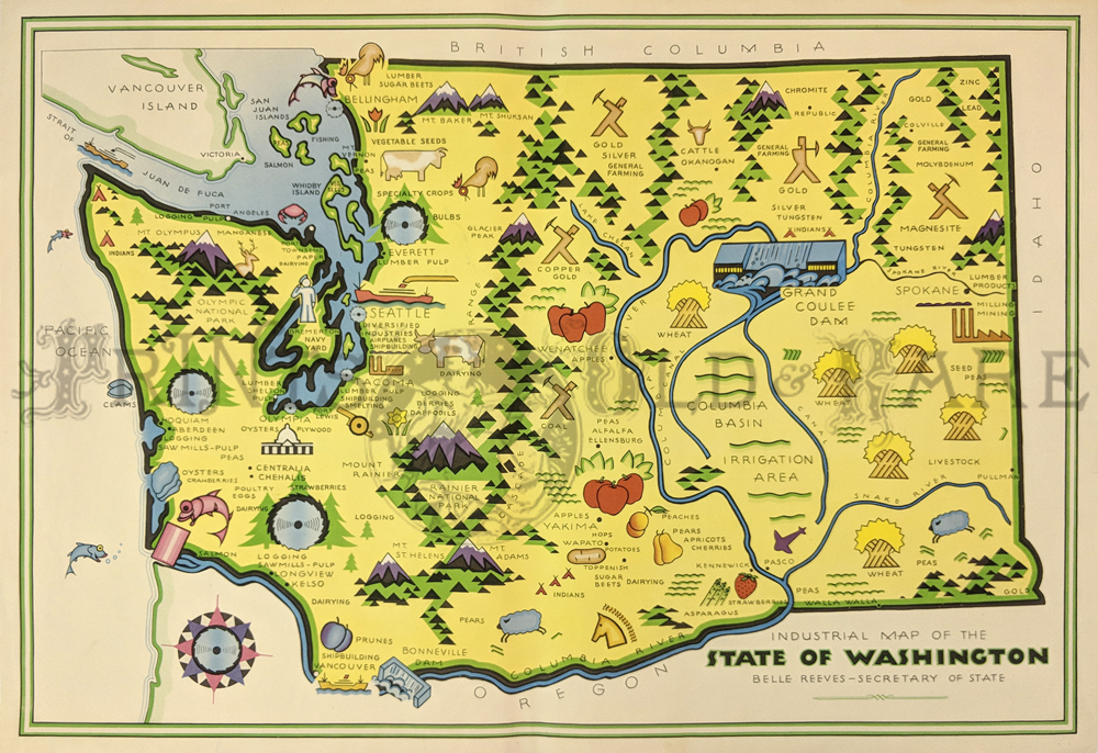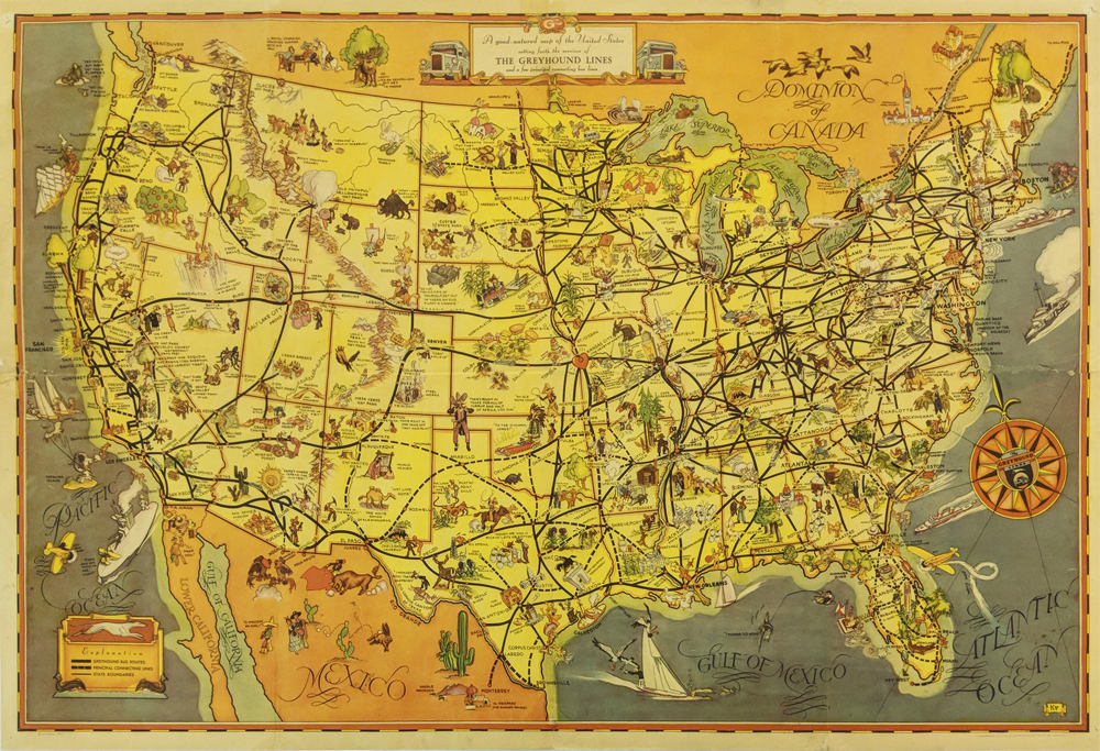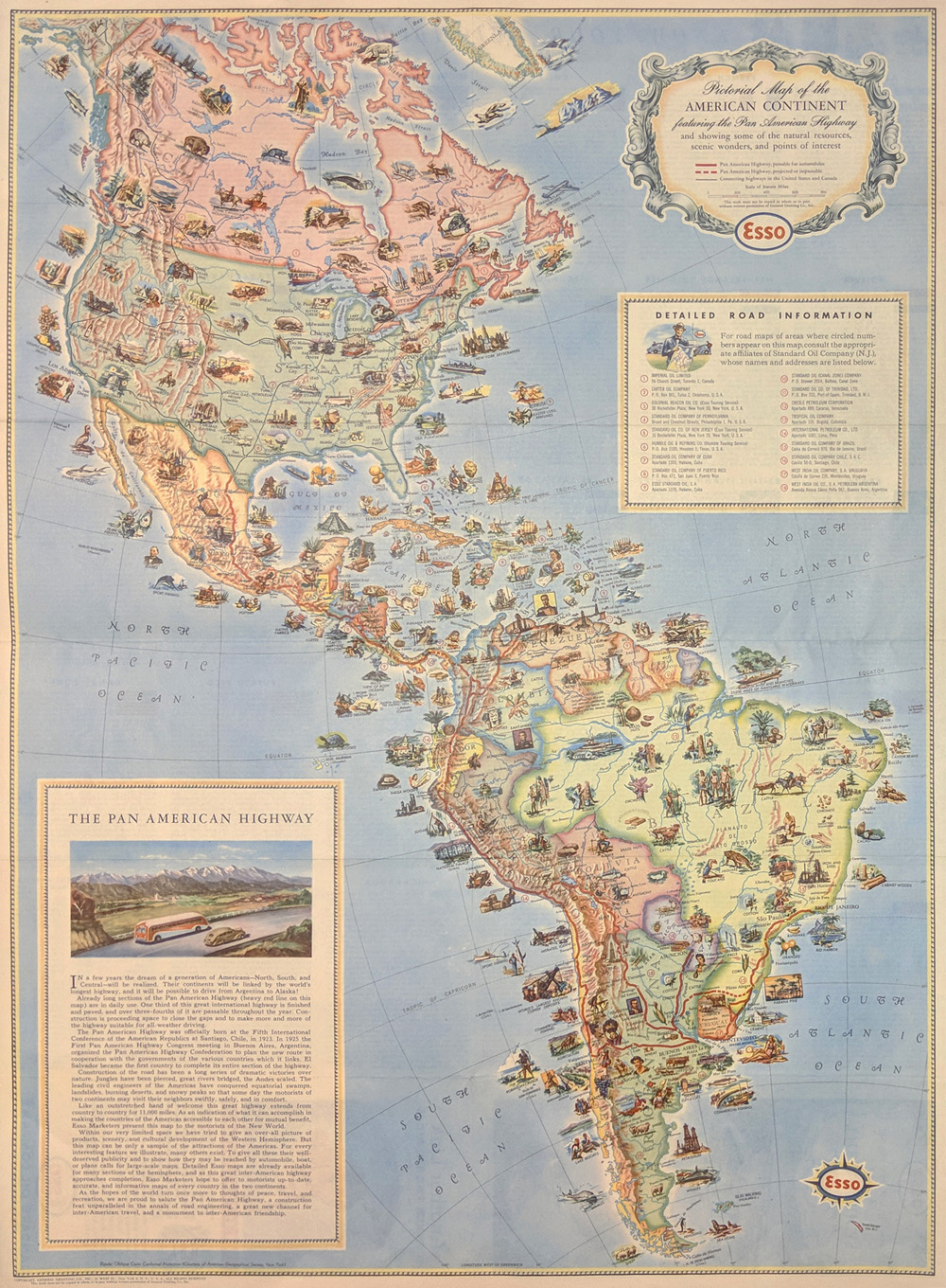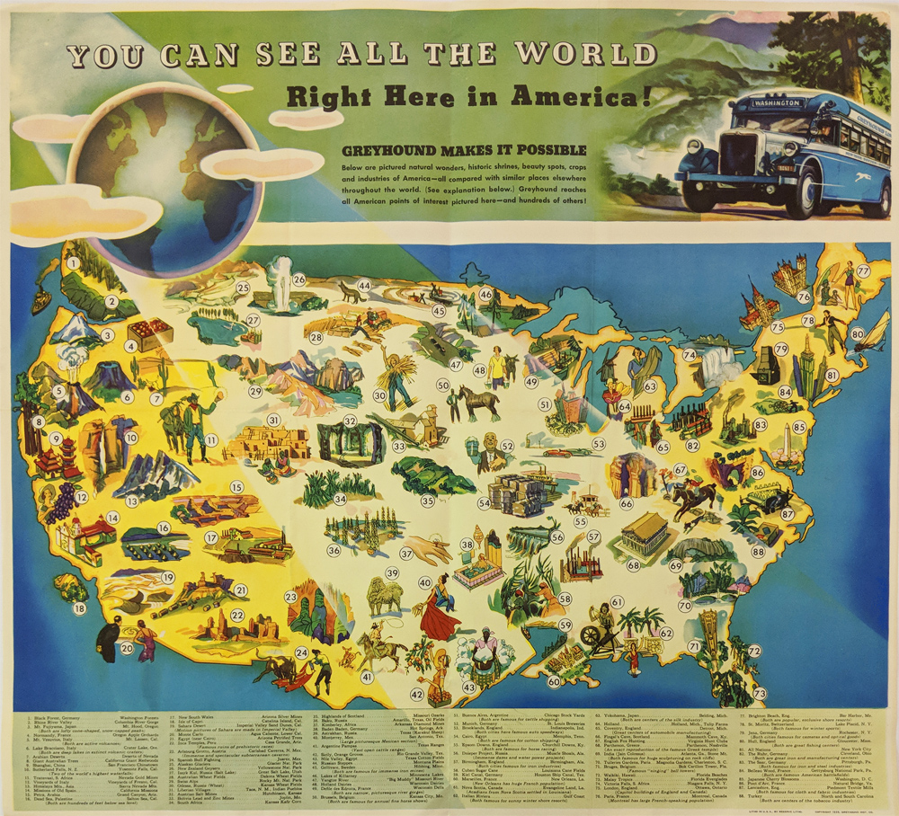![]() 001pictorialmaps: Pan American Highway Pictorial Map - Esso Corporation by American Geographical Society c1930. Pictorial Map of the American Continent showing scenic wonders and points of interest. Printed in color. 24 1/2 x 18 in. $195 ![]() 002pictorialmaps: 1935 Greyhound's Pictorial Map: "You Can See All The World" Right here in America. Map matches 88 US destinations with foreign places i.e. Baku Russia w/ Amarillo, Tx, Arabian Deserts w/ Nevada Deserts. Vignettes of sites. Printed in color. 24 x 22 in. $295 ![]() 004pictorialmaps: London Pictorial Map. Geographers’ Map Co. Shows places of interest, stations. C.1940. Insets of cinema land and theatreland. Linen backed, printed in color. 30 x 21 in. $75 ![]() 252Hawaii: Pictorial Map "Territory of Hawaii" by Ruth Taylor White. 1935. Humorous language tips on verso. 11 1/8 x 8 1/4 in. $90 ![]() 136los: Colorado River Aqueduct c.1940. Relief Map of Colorado River to L.A. Profile map of Colorado River to Pacific Ocean. 9 1/8 x 19 3/8 in. $85 ![]() 318NewYork: Map of the History of New York 1928 by Alexander Flick and Lance M. Paine. Colorful map depicting historical locations all over the state. Inset of Manhattan, Niagara, and Long Island. Lower left corner has been patched and small piece of bottom border has been archivally mended and/or patched. 21 x 29 in. $150 ![]() 307UnitedStates: 'Where We Grow Our Trees' 1952 Pictorial Map of the United States showing the various regions of forests and species of trees across the country. Published by American Forest Products Industries, Inc. Washington, D.C. **Minor tears on folds center top and bottom. 24 x 36 in. $260 |