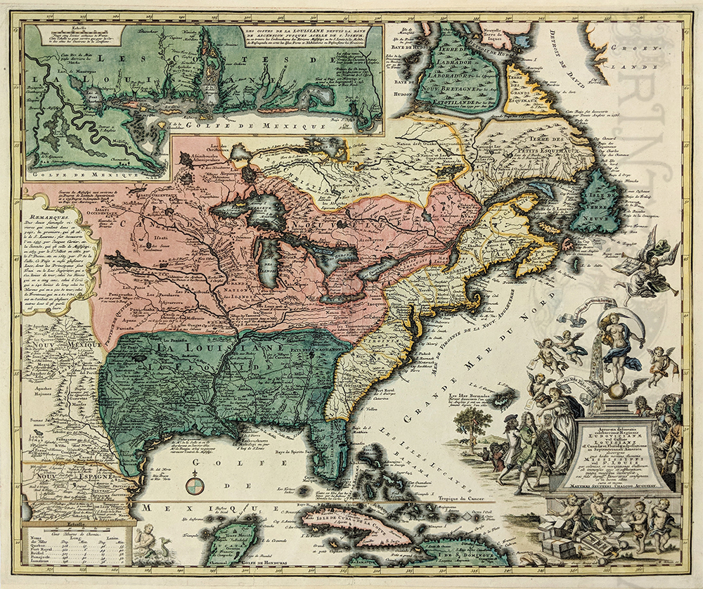 1730 North America Map with Inset of Gulf Coast, & "Mississippi
