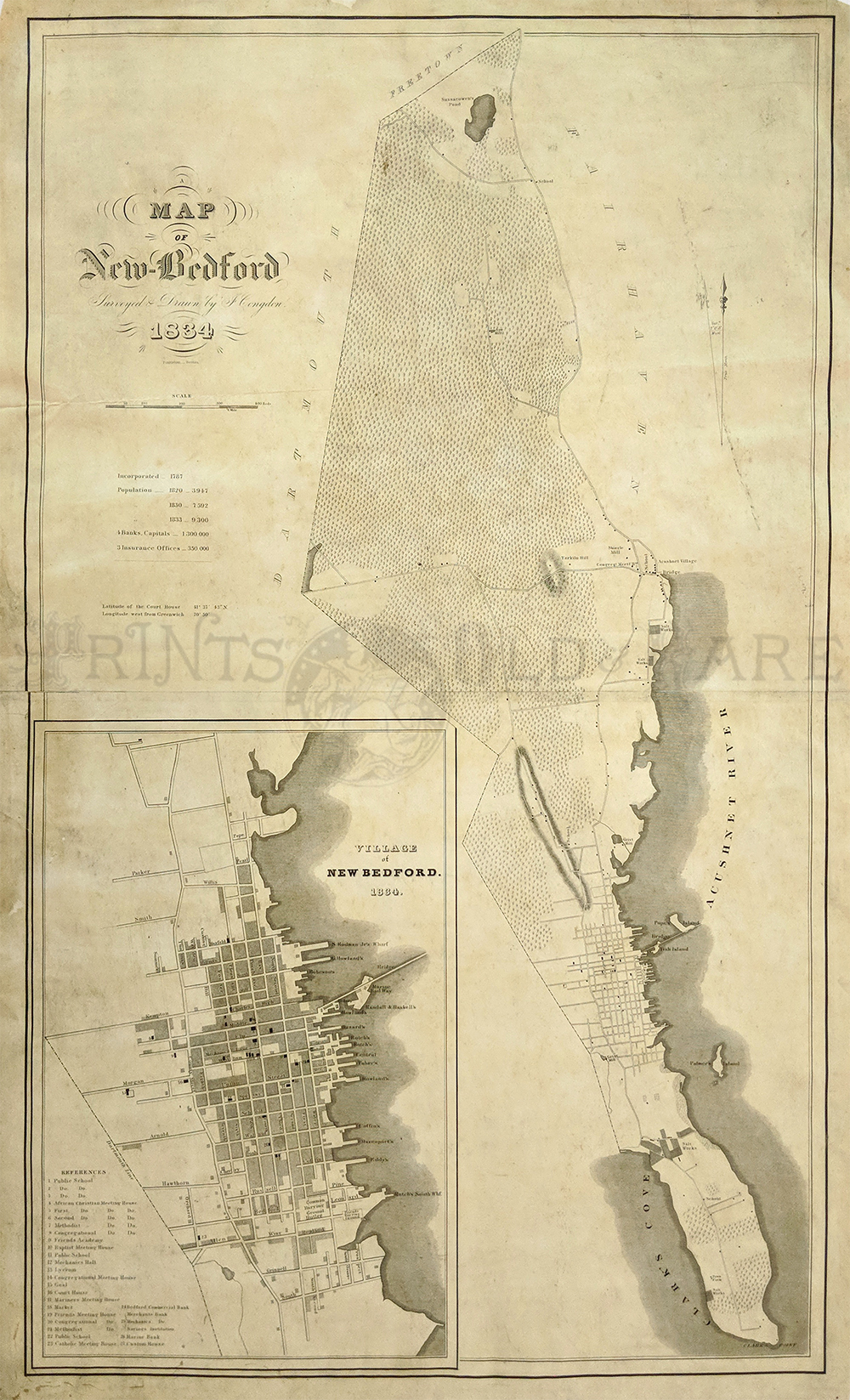 New Bedford with public buildings, roads, cemeteries, churches, plan