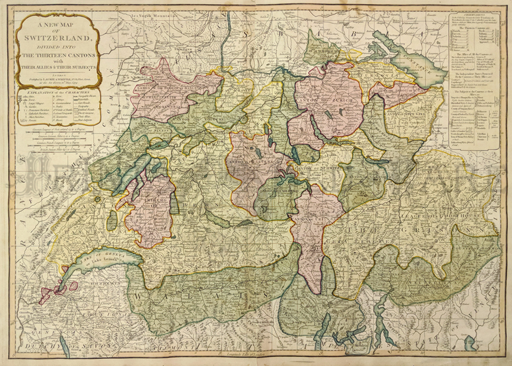 1794 Switzerland. Divided Into the Thirteen Cantons with their Allies
