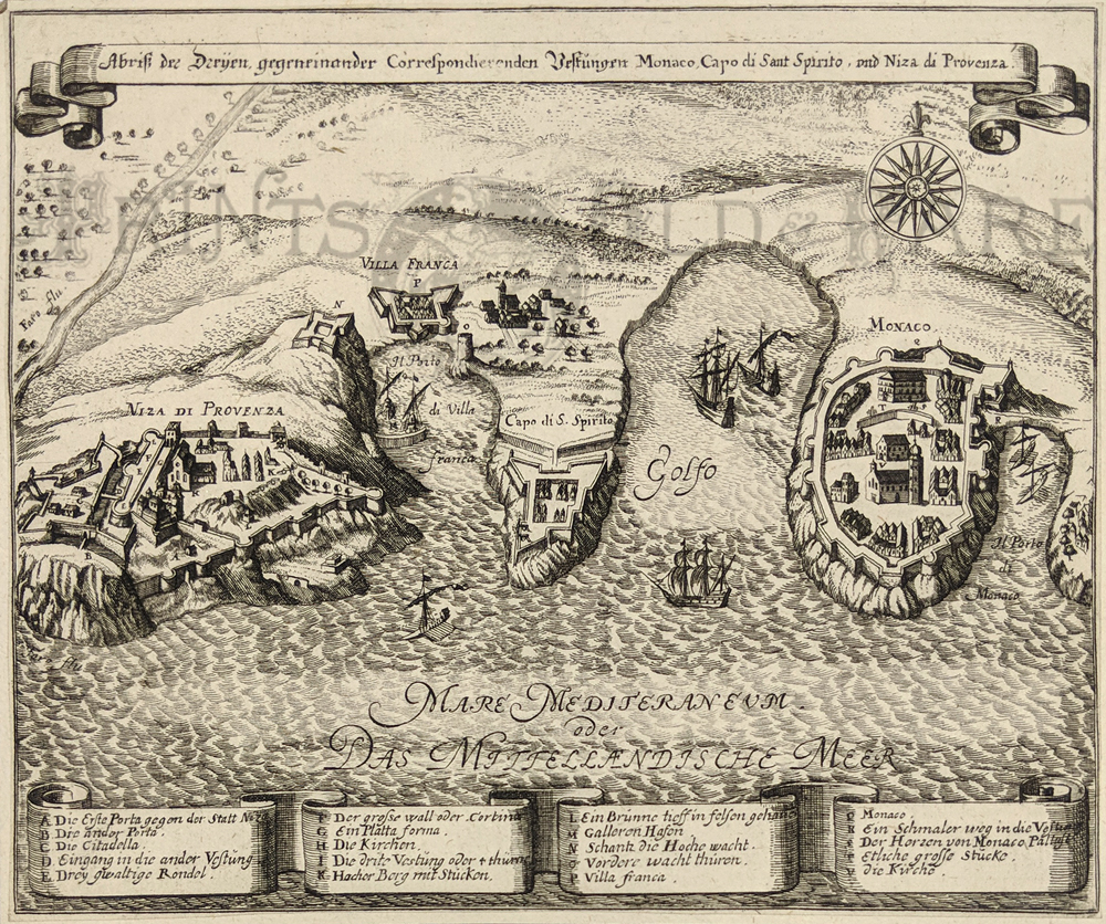 c.1704 Monaco (Nice Provence) Abriss uncolored copper engraving of the