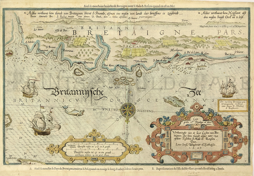 1583 Brittany, France. First Printed Chart of Brittany's Northern