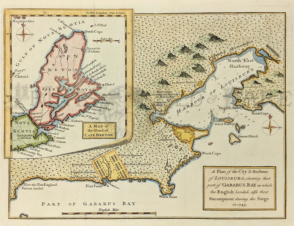 LOUISBURG; shewing that part of GABARUS BAY by Grindley. The inset map is titled, "A Map of the Island of