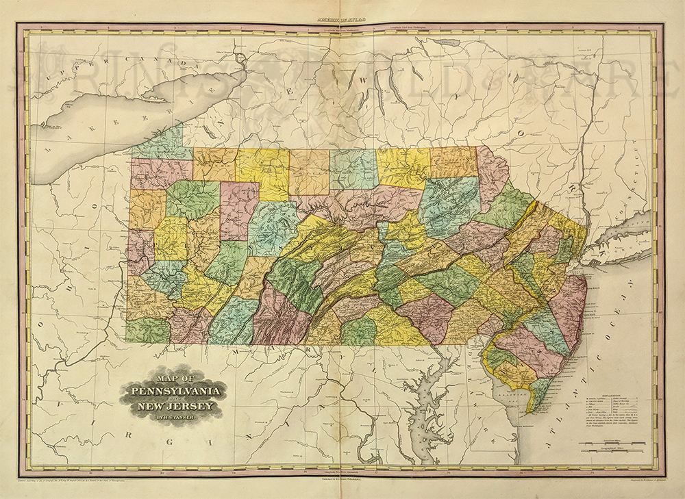 1823 Pennsylvania and New Jersey from H.S. Tanner's American Atlas. The
