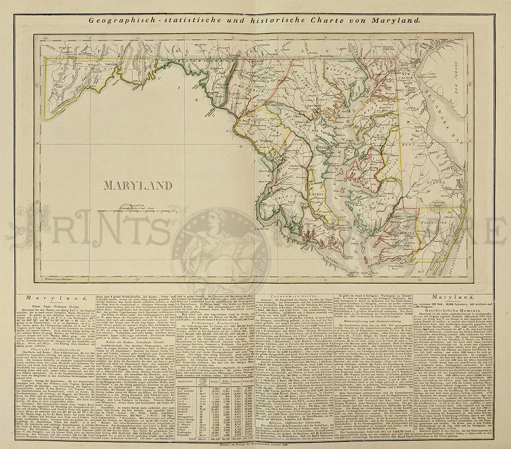 MAP OF MARYLAND - 1823. Hand colored engraved map produced in 1823.