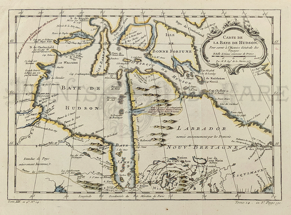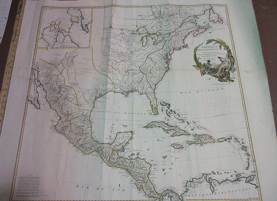 1746 North America. Hand colored copper engraved Map showing Amerique