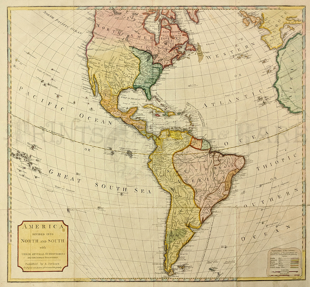 1814 Atlantic Islands. This map has its original hand coloring and is