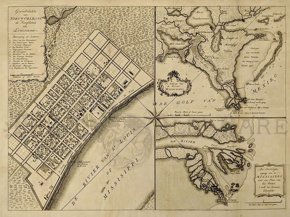 Grondvlakte van Nieuw Orleans de Hoofdstad van Louisiana. 1769 Copper