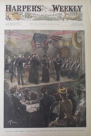 ![]() 001sal: 1891 Wedding Scene. Color antique engraving shows a Salvation Army wedding in New York. Published in an 1891 issue of Harper's Weekly. 11x16 in. $50 ![]() 002sal: 1882 Salvation Army Service. Old wood engraving shows a service of the Salvation Army on the steps of New York's City Hall. Published in an 1882 issue of Frank Leslie's Illustrated Newspaper. 10x12 in. $30 SOLD |