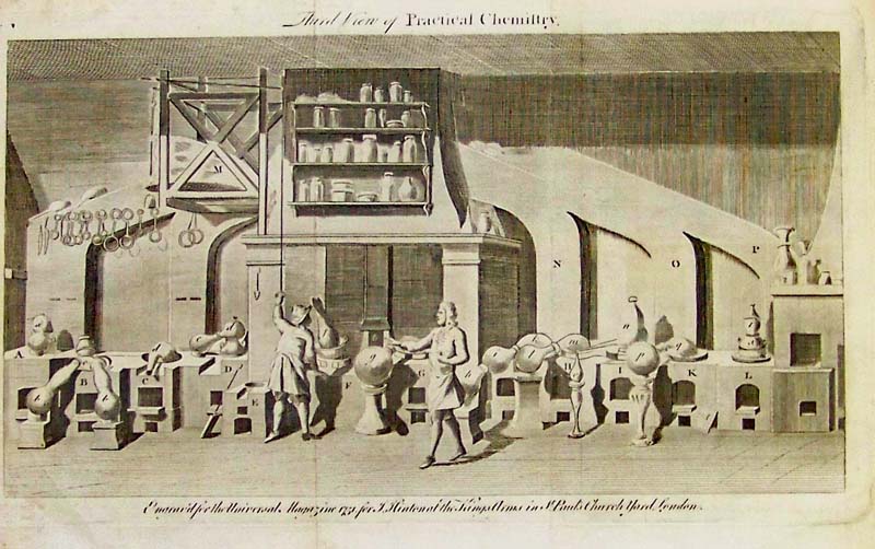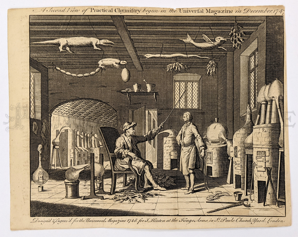 ![]() 001science: 1751 Original copper plate engraving titled, "Third View of Practical Chemistry." 11-1/2 x 8 in. $60