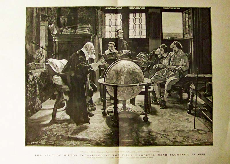 012science: 1894 Half-tone showing Galileo at the Villa D'Arcetri in image titled, "The Visit of Milton to Galileo at the Villa D'Arcetri, Near Florence, in 1638." This was featured in The Graphic. 23 x 16 in. $60