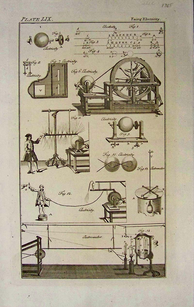 024science: 1765 Engraving in Plate LIX showing several figures of electricity in action in Facing Electricity. 14 x 9 in. $90