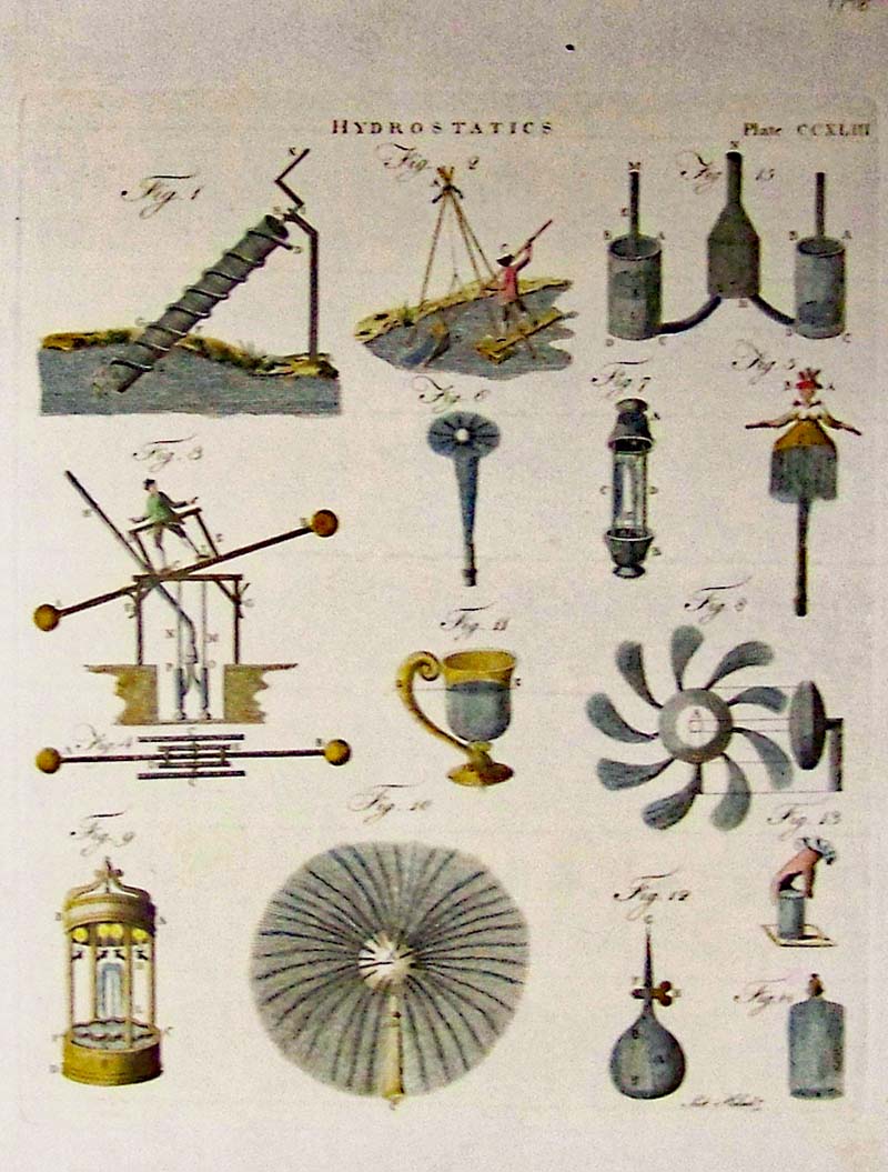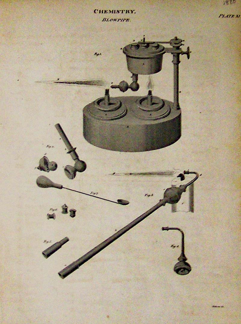 025science: 1798 Hydrostatics hand colored images from Plate CCXLIII. 10-1/2 x 8 in. $80 ![]() 026science: 1820 Chemistry engraving on Plate XI showing seven figures of a Blowpipe. 11 x 8 in. $60 ![]() 027science: 1820 Astronomical Instruments engraving showing geometric equipment in eight figures. Plate I. 11 x 8 in. $60