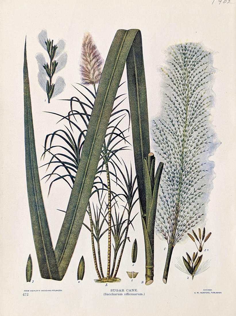 011sugar: 1855 Hand colored wood engravings pair which were featured in Ballou's Pictorial Drawing-Room Companion. These engravings show sugar making in the West Indies. Small brown stains on each border. Each image measures: 15 x 11 in. Sold as a set. $80 SOLD 012sugar: 1877 Hand colored wood engraving published in Scientific American titled, "Boiler Room of the Havemeyer Sugar Works, New York." 15-1/2 x 10-1/2 in. $50 ![]() 013sugar: C.1790 Hand colored copper engraving on Plate CXXVII showing two images where sugarcane is processed. 13-1/2 x 8-1/2 in. $120 ![]() 014sugar: Sugar Cane (Saccharum officinarum). 1902 Birds & Nature. A. W. Mumford, Chicago. 7 1/8 x 9 3/4 in. $80 |