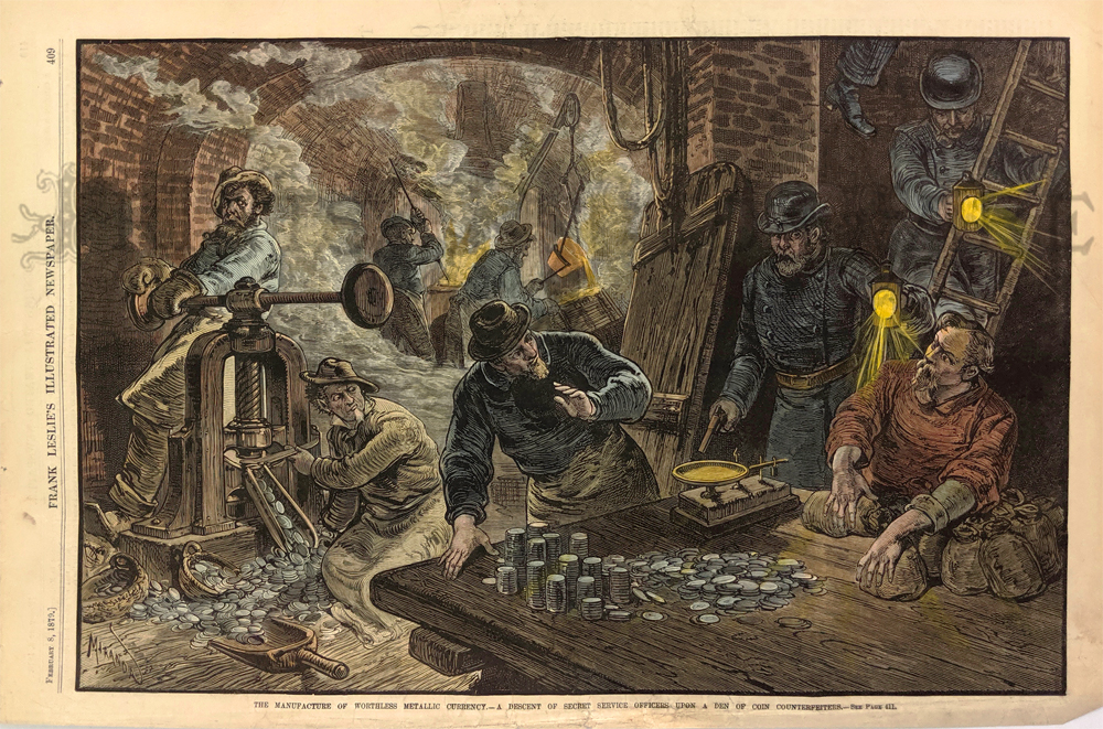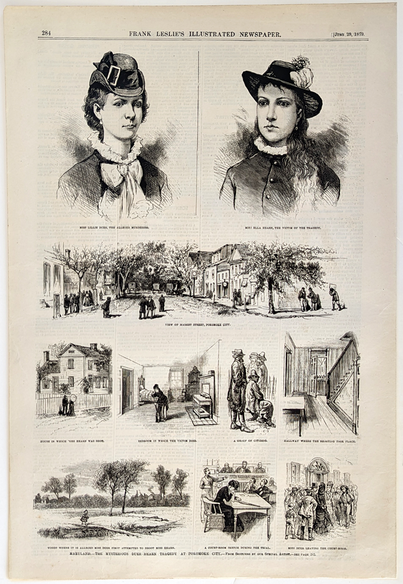 ![]() 021crime: The Mysterious Duer-Hearn tragedy at Pokomoke City - Maryland. 10 vignette's showing the portraits, Market street, scene of the crimes, etc. 1879 Frank Leslies'. Wood engraving. 11 x 16 in. $40 ![]() 022crime: The Solution of the mysterious murder of Mrs. Dr. Hull - Incidents of the arrival of the self-confessed murderer. New York City. 1879 Frank Leslies'. Wood engraving. 10 7/8 x 16 in. $40 ![]() 023crime: Private Detective at work – “Spotting His Game.” Police Gazette 1883,rare. Female “Fly Cop” makes love and works her point – Shadows which betray secrets and people who live by betraying them. 11 1/4 x 16 in. $60 ![]() 024crime: Jury Complaints “The Reason So Many Criminals Escape” on the left“incompetent citizens always ready to serve” on the right “reputable citizens excused.” Chromolithograph. 10 x 13 3/8 in. $90 ![]() 025crime: Counter fitters and Secret Service “Manufacturing Worthless MetallicCurrency” 1872 dramatic hand colored, wood engraving from Frank Leslies’. 10 5/8 x 15 3/4 in. $80 ![]() 026crime: RARE: Old Text: Electric Chair Execution Death. Fascinating one-page article, with engraved illustrations, from the June 30, 1888 issue of Scientific American. Title of the article is "Execution by Electricity." Electricity had not yet been used for capital punishment, but the article describes in detail how it could be most effective. It also describes some of the experiments that had been tried on animals such as dogs. According to the article, the state of New York was about to begin using the electric chair as its primary means of execution. This item is in very good condition. There is a light water stain on the paper, but it is not visually distracting. 11 x 16 in. $40 ![]() 027crime: Mrs. Surratt, with the conspirators and assassins, hooded and ironed, proceeding to the penitentiary at Washington D.C. 1865 Frank Leslies'. Wood engraving. 11 x 16 in. $40 ![]() 028crime: "Terrible Tragedy in New York" Detailing the story and pictures of Francis A. Gouldy who murdered his family and family's servants. 1858 Harper's Weekly. Wood engraving. **Small holes down center fold. 16 x 22 1/2 in. $60 ![]() 029crime: "Washington, D.C.--The Closing Act in the Tragedy of President Garfield's Assassination Guiteau's Last Look from the Scaffold, The Moment Before the Execution." Double page engraving from 1882 Frank Leslie's Illustrated Newspaper German Edition. Double page wood engraving showing Charles Julius Guiteau;, convicted assassin of President James A. Garfield about to ben "hooded" for execution. 16 x 21 1/2 in. $60 ![]() 030crime: Double page 1859 Harper's Weekly detailing the Sickles Tragedy at Washington. Portraits, location, homicide scene shown. Wood engraving. **Small holes down center fold. 16 x 22 1/2 in. $60 ![]() 031crime: Legal Barbarities at New Castle, Delaware. 1867 Frank Leslies Illustrated News. Wood engraving. **Has been archivally reinforced along verso borders. Foxing/water stain middle right quadrent. 11 x 15 1/2 in. $60 |