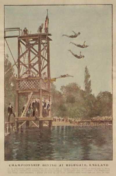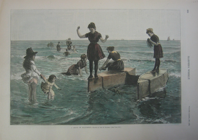 ![]() 001watr: 1903 Diving Scene. Hand colored engraving from Harper's Weekly, titled "Championship Diving at Highgate, England." Shows four divers jumping from a platform, while a crowd watches. 9x13 in. $40 Black and White is $30 ![]() 002watr: 1869: Young Women Swimming. Engraved scene from Harper's Weekly, titled "Ducks in the Water." Shows a group of young women in Victorian bathing suits, swimming in a pond. 11x16 in. $30 Color is $40 ![]() 004watr: 1893 Canoe Association Meeting Scenes. Five photographic images from Harper's Weekly, titled "Annual Meet of the American Canoe Association at Wolfe Island, St. Lawrence River." Shows canoe enthusiasts gathered in a campground, enjoying their vacation. 11x16 in. $30 ![]() 007watr: 1884 Canoe Paddling Print. Hand colored, wood-engraved print from Harper's Weekly, titled "Cruising Canoes--The Last Match." Shows three men seated in canoes on a river in the wilderness. One of the men is attempting to light his pipe with the last available match. 11x16 in. $50 ![]() 008watr: 1880 Young Women Swimming. Engraved scene from Harper's Weekly, titled "Swimming A La Mode." Shows several young women relaxing and swimming in a country stream. 11x16 in. $50 Black and White is $40 |